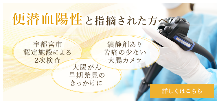 宇都宮市の胃がん検診(胃カメラ検査)に対応しています。また、胃がん検診や大腸がん検診にて異常を指摘された方、健康診断・人間ドックで要精密検査を指摘された方の精密検査(二次検査)にも対応しています。